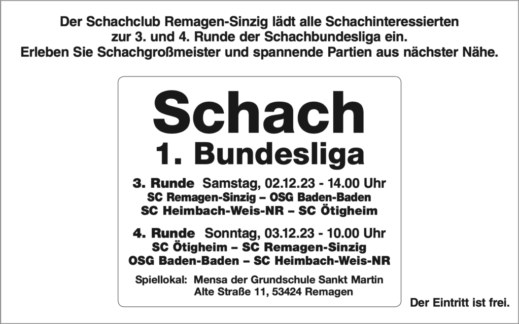Aktuelle Informationen über Schach in Bonn und im Rhein-Sieg-Kreis